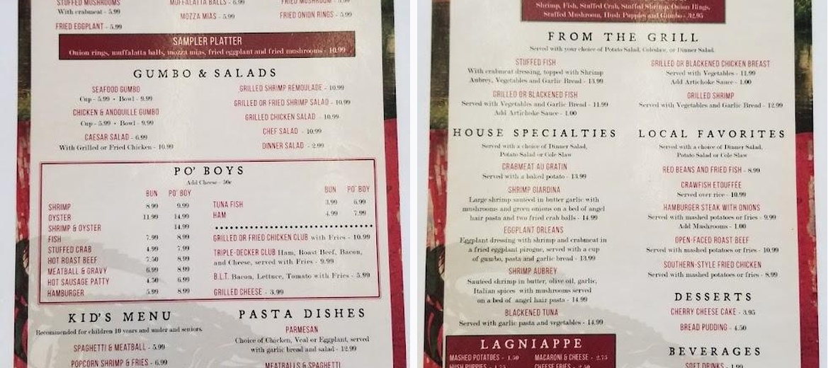 Jake’s is not a new one , but they’re definitely a TRUE one! Jake’s is still cooking filling locals and visitors bellies with yummy homelike cooked meals. From their Fried Fish ,to their Gumbo ,to their Club sandwich ,ALL are 5Star! They also have Shrimp Aubrey, which is Soo good! Definitely recommend.